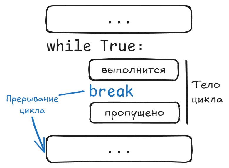 False- завершить инструкциюwhileи перейти к следующей по-порядку инструкции. - Если значение