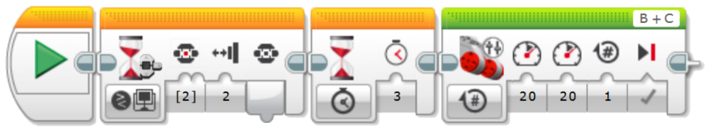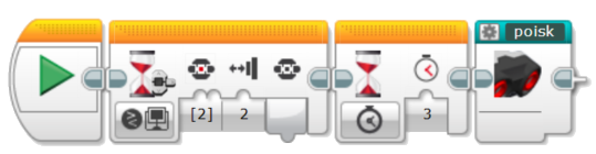 Составьте следующую программу для запуска движения робота после нажатия на центральную кнопку блока. Пауза перед началом движения - 3 секунды.