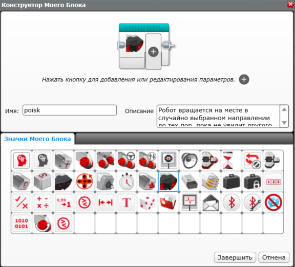 Выберите пункт меню Инструменты - Конструктор Мой блок. Откроется Конструктор Моего блока. В поле Имя впишите название нового блока - ataka. Теперь код решения должен выглядеть следующим образом: