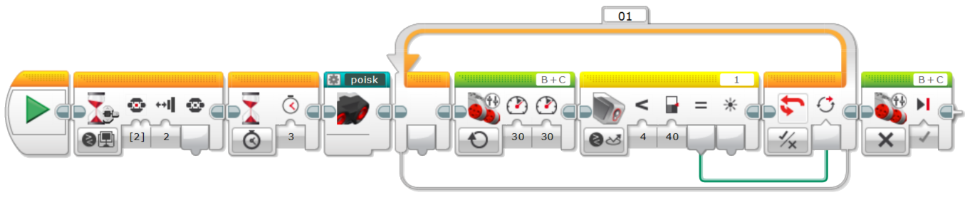Обведите мышью блоки программы отвечающие за поиск противника: