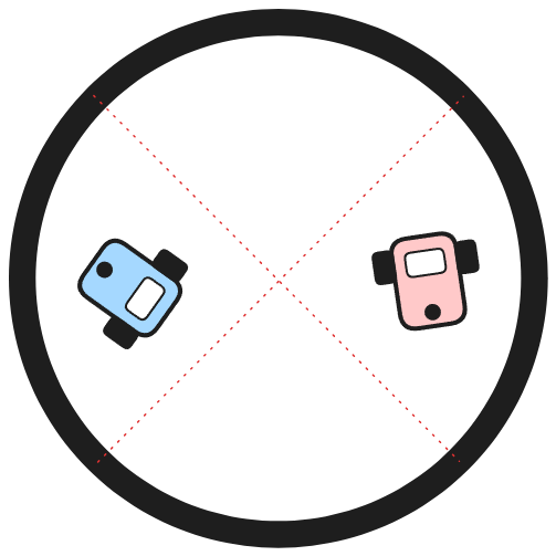 Перед началом раунда участники размещают робот на ринге. Роботы должны располагаться в противоположных секторах ринга. Проекция робота (не считая провода) не должна выходить за пределы ринга (Рисунок 1).