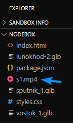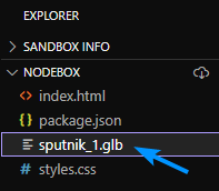 Перетащите файл sputnik_1.glb в проводник проекта: